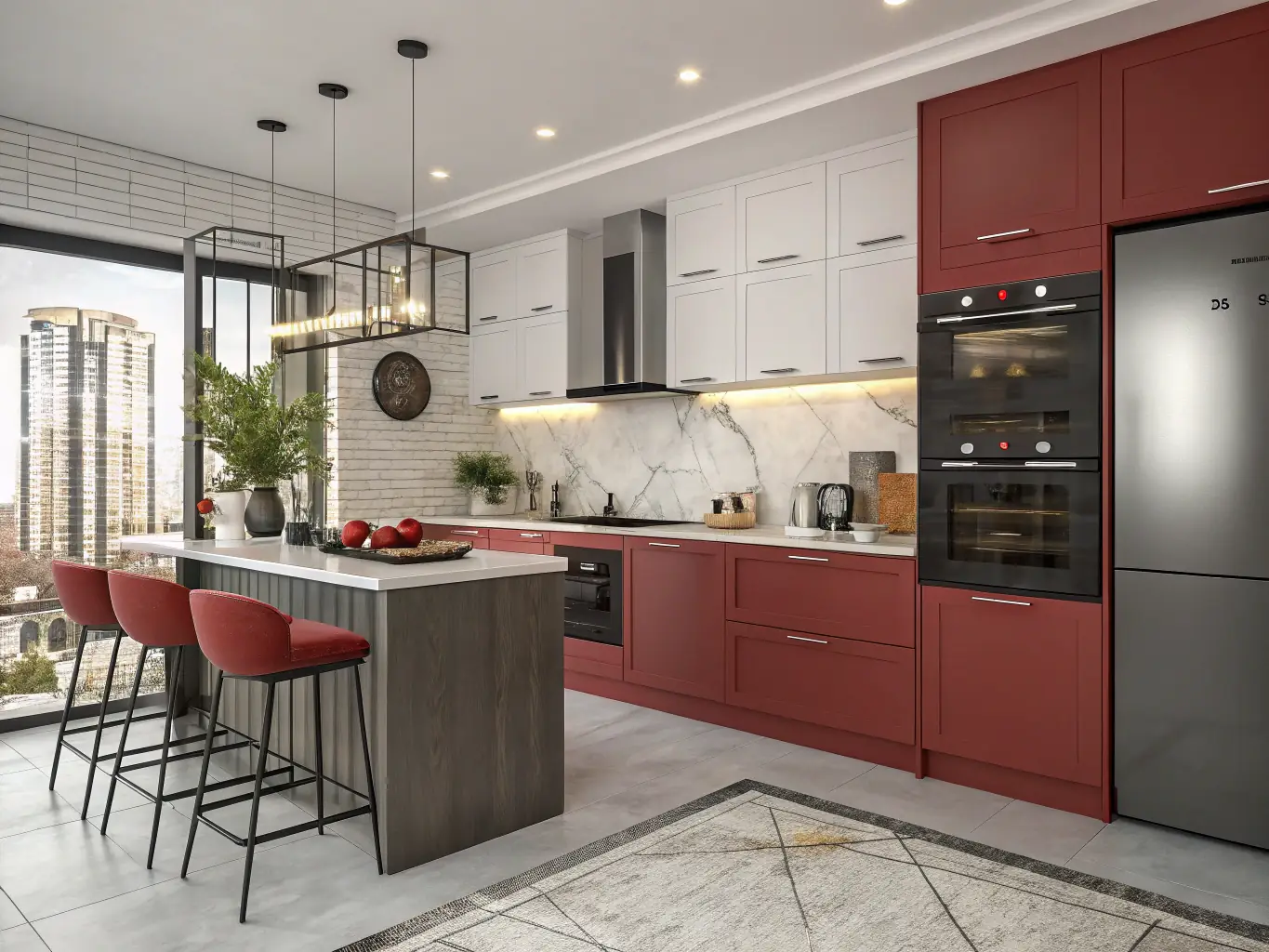 A contemporary kitchen featuring sleek cabinets, quartz countertops, and minimalist design elements, exemplifying modern elegance and functionality.