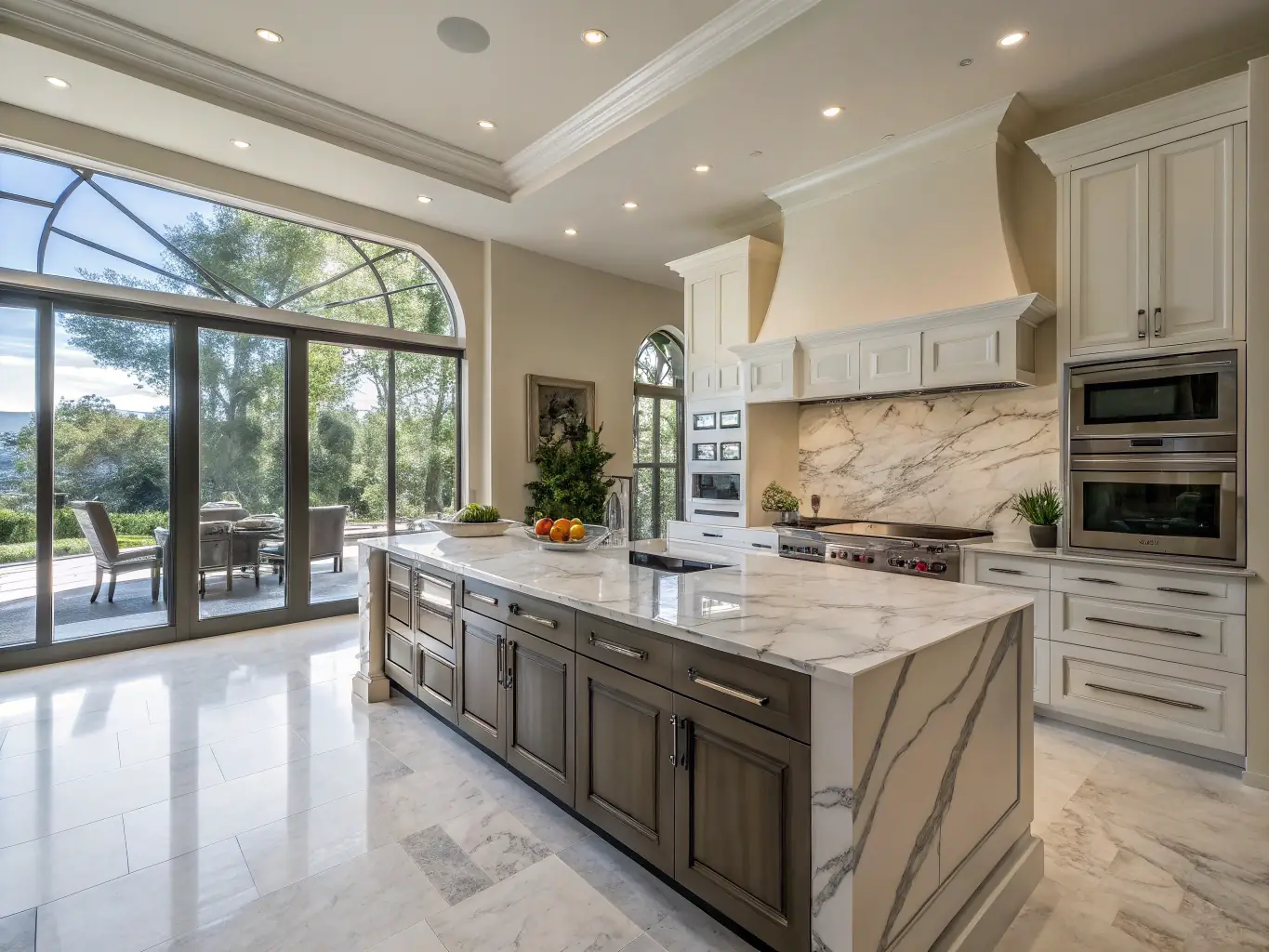 A high-end kitchen remodel featuring premium materials, custom cabinetry, and state-of-the-art appliances, demonstrating sophistication and quality.